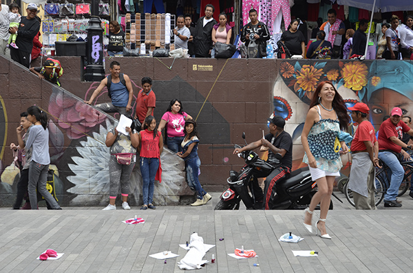Performance en el espacio público, organizado por Paola Paz Yee, participan Hortensia Ramírez, Víctor Martínez, Eugenia Chellet, Hector Canonge y Paola Paz Yee
